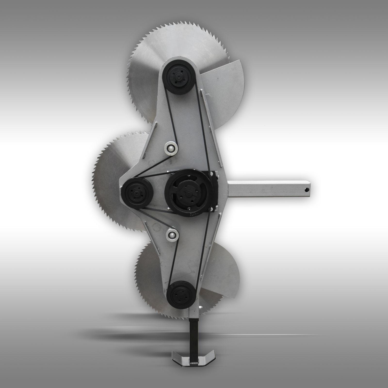 Obsahuje 3 speciálně kalené pilové kotouče (s 80 zuby), každý o průměru 600 mm a hmotnosti 14 kg. Pila má efektivní pracovní šířku přibližně 1 750 mm.