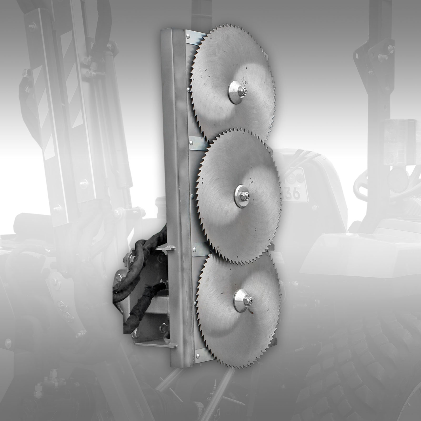 Má 3 pilové kotouče s karbidovými hroty (každý se 72 zuby) a průměr 400 mm. Pila má efektivní pracovní šířku cca. 900 mm.