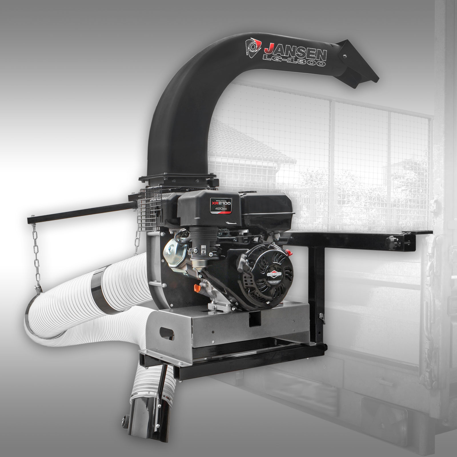 Sběrač listí Jansen LG-1300 je výkonná vakuová jednotka s montážním rámem pro instalaci na téměř všechna vozidla s ložnou plochou a bočními stěnami. To vám umožní rychle vysát listí, trávu, papír a mnoho dalšího a přepravit je vyhazovacím žlabem přímo na přívěs. Vyhazovací žlab lze otočit o 90° pomocí 4 šroubů a má vypouštěcí klapku pro ovládání průtoku vzduchu a směru vyhazování. Díky volitelně dostupnému vysouvacím nástavci nejsou problémem ani vyšší přívěsy.